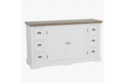 Fleur Buffetkast 164cmHet romantische en landelijke meubelprogramma Fleur bestaat uit diverse trendy, witte meubelen met vergrijsde houten bladen.De buffetkast is voorzien van diverse handige opbergladen en kasten.