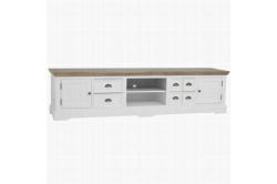 Fleur TV-dressoir 220cmHet romantische en landelijke meubelprogramma Fleur bestaat uit diverse trendy, witte meubelen met vergrijsde houten bladen.
