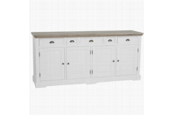 Fleur Buffetkast 204cmHet romantische en landelijke meubelprogramma Fleur bestaat uit diverse trendy, witte meubelen met vergrijsde houten bladen.De buffetkast is voorzien van diverse handige opbergladen en kasten.