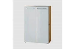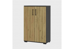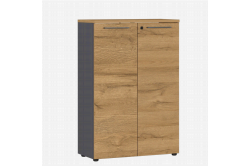 Lage dichte kantoorkast Discovery EikenDeze lage dichte kantoorkast is 80cm breed, 123cm hoog en 40cm diep en heeft achter de twee openslaande deuren twee legplanken.