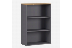 Lage brede kantoorkast Ergonoma EikenDeze lage bredere open kantoorkasten kan perfect gecombineerd worden met de andere kasten uit de serie Ergonoma. Door zijn donker grijze kleur geven ze een mooi accent aan je complete kantoorwand.