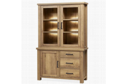 Nijkerk vitrinekast 126cmEen mooi tijdloze meubelserie, gemaakt in de warme kleur Barley. Het programma is ideaal in gebruik het is namelijk slijt- en krasvast.