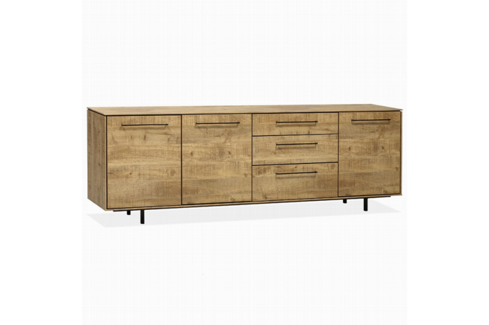 Dressoir Rancho heeft een prachtige warme mango kleur, de fijne metalen accenten maakt het helemaal af. Het dressoir is slijt- en krasvast en is voorzien van softclosing. Verkrijgbaar in 2 maten.