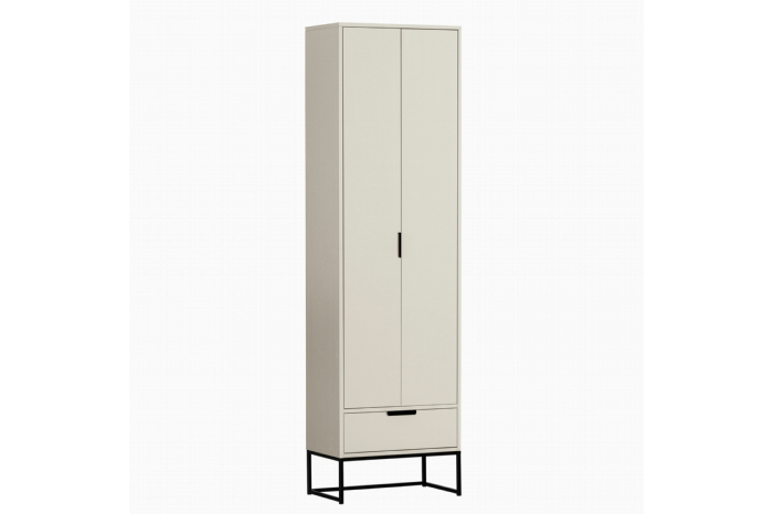 Wandkast Silas van woonmerk WOOOD heeft een strakke, moderne uitstraling en biedt een goede basis voor een interieur. Bovendien is er lekker veel plek om spullen op te kunnen bergen. Deze hoge kast met twee deuren en lade is van grenenhout met een finifh in kleur Dust. Dit is een elegante greige kleur die rust en ruimte uitstraalt. Het onderstel is van zwart metaal. Het frame geeft een luchtige look en is bovendien praktisch met schoonmaken.Indeling:De kast heeft 2 lange deuren met daarachter een ruim opbergvak. Er zitten 3 planken in, zodat er een handige vakverdeling ontstaat. Ieder vak is 56 cm breed en 40 cm hoog. De lade is 56 cm breed en 31 cm diep. Het draaggewicht per plank of lade is 15 kg.Levering & montage:Wandkast Silas wordt als bouwpakket geleverd (2 pakketten) en moet nog gemonteerd worden. Het monteren van de kast, doe je met 2 personen en deze kast wordt liggend gemonteerd. Houd rekening met extra hoogte voor wanneer je de kast omhoog gaat kantelen. Zorg voor het juiste gereedschap en volg vervolgens stap voor stap de gebruiksaanwijzing. Plaats voor het beschermen van harde vloeren viltglijders onder de poten. TIP: borg de kast aan een wand om kantelgevaar te voorkomen.