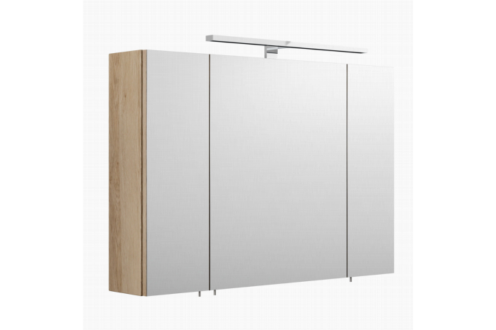Deze spiegelkast heeft een klassieke uitstraling en is toepasbaar in veel omstandigheden. De spiegelkast is voorzien van een 8 watt chroomkleurige ledlamp welke in elke omstandigheid goed neutraal wit licht geeft. Achter de 3 deuren, voorzien van soft-close, bevinden zich 2 glazen planken om al je spullen op te bergen, ook bevindt zich hier de aan/uit knop in combinatie met een stopcontact. Deze kast is afgewerkt met een melamine waardoor deze goed schoon te maken is. De kast is 90cm breed, 62cm hoog en 17cm diep en is te verkrijgen in het wit, eiken, walnoot en antraciet.