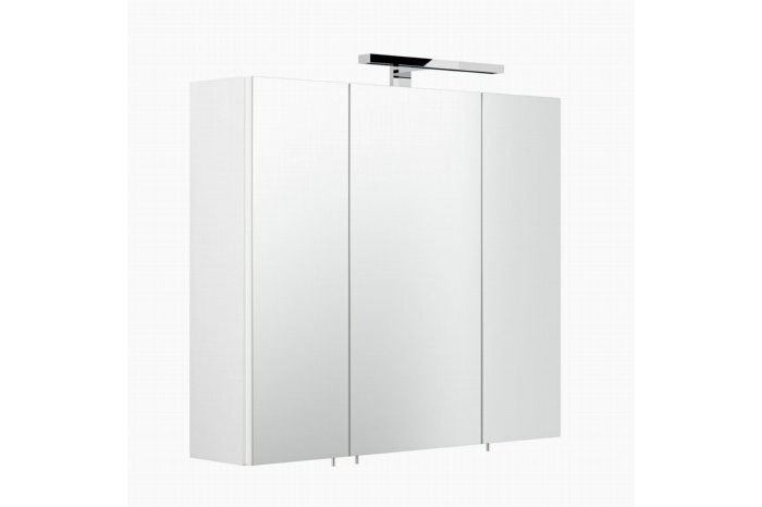 Deze spiegelkast heeft een klassieke uitstraling en is toepasbaar in veel omstandigheden. De spiegelkast is voorzien van een 5 watt chroomkleurige ledlamp welke in elke omstandigheid goed neutraal wit licht geeft. Achter de 3 deuren, voorzien van soft-close, bevinden zich 2 glazen planken om al je spullen op te bergen, ook bevindt zich hier de aan/uit knop in combinatie met een stopcontact. Deze kast is afgewerkt met een melamine waardoor deze goed schoon te maken is. De kast is 70cm breed, 62cm hoog en 17cm diep en is te verkrijgen in het wit, eiken, walnoot en antraciet.