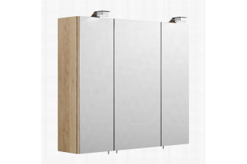 Deze spiegelkast heeft een klassieke uitstraling en is toepasbaar in veel omstandigheden. De spiegelkast is voorzien van 2 keer een 1 watt ledlamp welke in elke omstandigheid goed neutraal wit licht geeft. Achter de 3 deuren, voorzien van soft-close, bevinden zich 2 glazen planken om al je spullen op te bergen, ook bevindt zich hier de aan/uit knop in combinatie met een stopcontact. Deze kast is afgewerkt met een melamine waardoor deze goed schoon te maken is. De kast is 70cm breed, 62cm hoog en 17cm diep en is te verkrijgen in het wit, eiken, walnoot en antraciet.