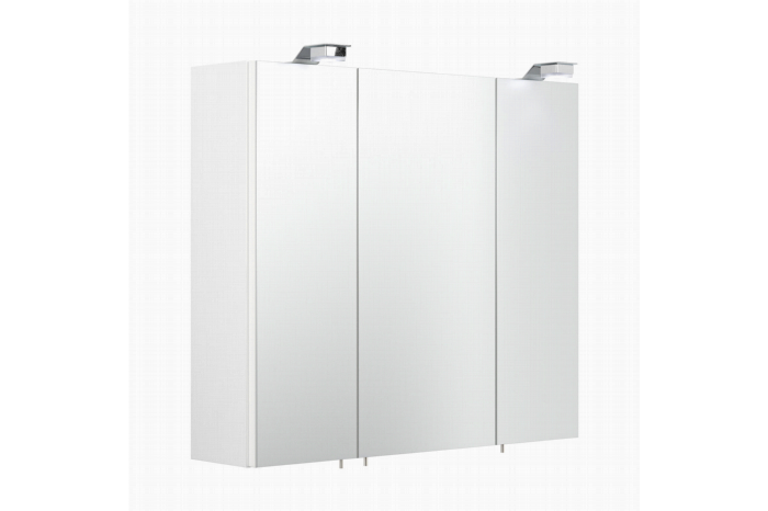 Deze spiegelkast heeft een klassieke uitstraling en is toepasbaar in veel omstandigheden. De spiegelkast is voorzien van 2 keer een 1 watt ledlamp welke in elke omstandigheid goed neutraal wit licht geeft. Achter de 3 deuren, voorzien van soft-close, bevinden zich 2 glazen planken om al je spullen op te bergen, ook bevindt zich hier de aan/uit knop in combinatie met een stopcontact. Deze kast is afgewerkt met een melamine waardoor deze goed schoon te maken is. De kast is 70cm breed, 62cm hoog en 17cm diep en is te verkrijgen in het wit, eiken, walnoot en antraciet.