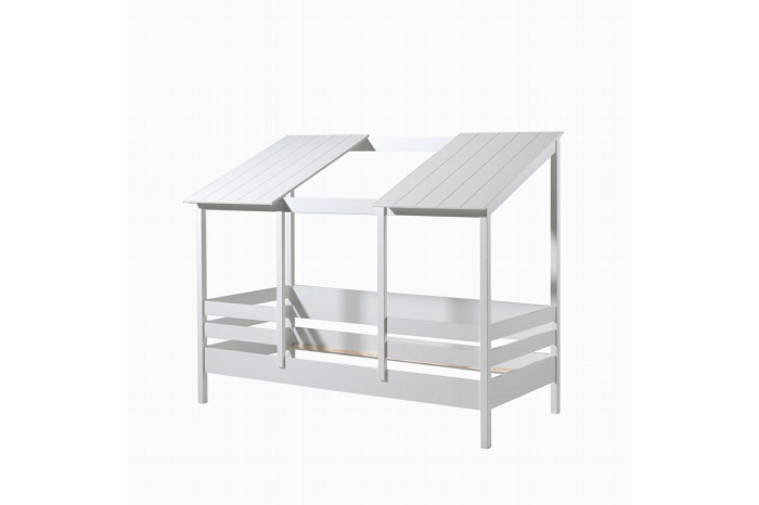 Met dit stevige huisbed heeft ieder kind een heerlijke plek om te slapen en te spelen. Het bed is voor een groot gedeelte omringd door een speels hekwerk wat tevens als uitvalbeveiliging dient. Door de verticaal gefreesde lijnen op het dak in combinatie met het wit gelakte frame is dit bed een echte eyecatcher in je kinderkamer. Dit bed wordt geleverd exclusief lattenbodem. Het bed is vervaardigd uit een combinatie van massief grenen en MDF. Verkrijgbaar in verschillende uitvoeringen.