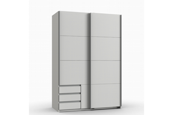 De slimme indeling van de Elsen kledingkast met schuifdeuren biedt volop ruimte voor je kledingcollectie. Achter de deuren vind je diverse legplanken en een hanggedeelte, ideaal om je favoriete outfits georganiseerd en overzichtelijk op te bergen. Zelfs wanneer de kast gesloten is, zijn de drie lades eenvoudig te bereiken.