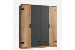 Kledingkast Bruno 4-deursMet deze handige degelijke kast ben je snel voorzien van extra opbergruimte. De kast is vervaardigd van een stevige spaanplaat en is afgewerkt met een sterke melamine.