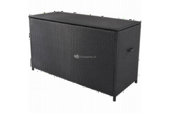 Kussenbox wicker zwart U kent het vast wel; een prachtige loungebank aangeschaft, maar een beetje goed loungen gaat gepaard met heerlijke kussens. Waar gaat u deze vervolgens opbergen na gebruik? Deze ruime kussenbox biedt uitkomst! Deze kussenbox he...