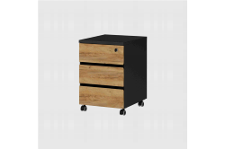 Ladeblok EdisonDit ladeblok uit de kantoorcollectie Edison heeft een warme uitstraling door de afwerking in goudeiken. Door de strakke zwarte handvatten heeft het meubel toch een moderne look.