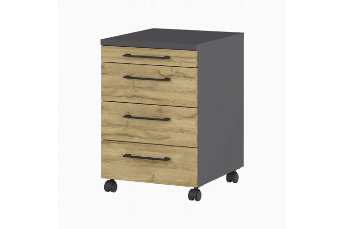 Dit moderne ladeblok heeft vier soepele lades om al uw kantoorartikelen op te bergen. Daarbij is het ladeblok makkelijk verrijdbaar vanwege de wieltjes waarvan u er twee kunt vastzetten zodat het ladeblok vast komt te staan. De metalen handvatten geven het ladeblok een stoere design uitstraling. De kantoormeubelen uit de serie Discovery geven u veel verschillende mogelijkheden om uw (thuis)kantoor praktisch, efficiënt, maar ook stijlvol en modern in te richten. Daarbij zijn de kantoormeubelen uit deze serie van zeer hoge Duitse kwaliteit. Door een sterke melamine afwerking in combinatie met een ABS-kantafwerking ben je met deze meubels verzekerd van een lange levensduur. De meubels zijn eenvoudig te monteren met behulp van een duidelijke montagehandleiding. De kasten, het ladeblok en de bureaus passen onderling erg goed bij elkaar, maar zijn door de neutrale natuurlijke kleuren en nette afwerking ook afzonderlijk gemakkelijk te combineren met andere items uit uw al bestaande interieur.