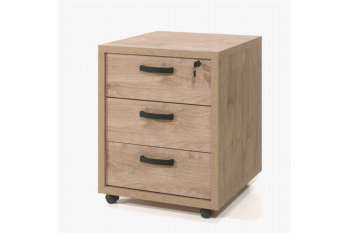 Dit ladeblok uit de kantoorcollectie Edison heeft een warme uitstraling door de afwerking in goudeiken. Door de strakke zwarte handvatten heeft het meubel toch een moderne look. De platen zijn afgewerkt met een sterk krasvast melamine toplaag. Het ladeblok heeft 3 lades met een slot zodat u uw spullen veilig kunt opbergen. Dit ladeblok past perfect bij één van de bureaus of de andere kasten uit de serie Edison.