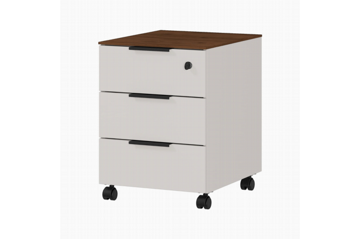 Ladeblok met drie laden van gelijke hoogte, de bovenste lade is afsluitbaar. Voldoende ruimte voor al je kantoorartikelen en toepasbaar in elke ruimte. In harmonie met deze warme serie kantoormeubelen voel je je gelijk thuis op je plek. Ga aan de slag en geniet van kwalitatieve meubelen van Duitse kwaliteit. Allen voorzien van geruisloos sluitende deuren en laden, afgewerkt met een sterke melamine en ABS-kantafwerking. Combineer verschillende meubelen uit deze serie en richt je kantoor in één keer goed in!