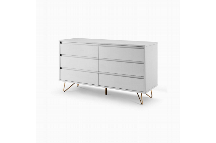 Dit stijlvolle dressoir biedt voldoende ruimte voor al je spullen, bovenop het dressoir is ruimte voor enkele accessoires. Het dressoir is vervaardigd uit een stevige MDF en heeft een matte afwerking. Door de combinatie met zijn gouden metalen poten een echte eyecatcher in je interieur. Gemakkelijk te monteren doormiddel van bijgeleverde montagehandleiding. Bekijk ook de andere elementen uit deze serie.