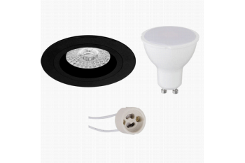 GU10 Inbouwspot Set - Mat Zwart - Inbouw Rond - Aigi - Pragmi Rodos Pro - 6W - Helder/Koud Wit 6400K