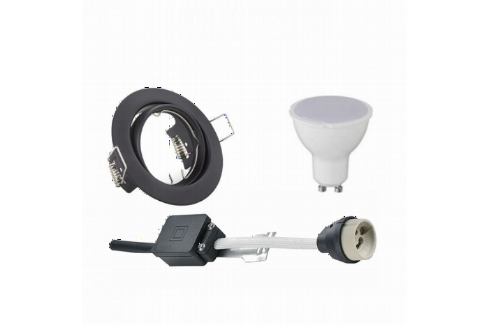 GU10 Inbouwspot Set - Mat Zwart - Inbouw Rond - Kantelbaar - Aigi - Trion - 8W - Helder/Koud Wit 640