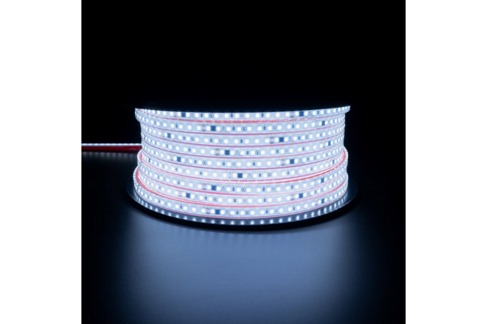 Velvalux LED Strip: Dé Sfeermaker voor Elke RuimteIntroduceer sfeer en elegantie in elke ruimte met de Velvalux LED Strip. Deze innovatieve LED-strip, uitgestrekt over 50 meter en stralend in helder/koud wit licht van 6000K, is de perfecte balans tussen design, functionaliteit en duurzaamheid.De Plug & Play functionaliteit zorgt ervoor dat je geen extra driver nodig hebt en dat je de strip direct op de netstroom kunt aansluiten. Voeg daarbij de mogelijkheid om elke 10 cm de strip in te korten, en je hebt een verlichtingsoplossing die zich aanpast aan al je creatieve wensen. Of het nu gaat om de woonkamer, keuken of de tuin, de Velvalux LED strip is ontworpen om te schitteren en te imponeren.Maar de kracht van deze LED strip zit niet alleen in zijn schoonheid. Met een IP67 classificatie is het bestand tegen weer en wind, wat het ideaal maakt voor zowel binnen- als buitentoepassingen. De eenvoudige installatie, mede mogelijk gemaakt door het betrouwbare 3M dubbelzijdige plakband, zorgt voor een zorgeloze ervaring. En met een helderheid van maar liefst 1920 lumen per meter, ben je verzekerd van een verlichting die elke ruimte tot leven brengt.Of je nu een sfeervol hoekje wilt creëren of een ruimte volledig wilt transformeren, de Velvalux LED Strip is je ultieme partner. Stap over op een verlichtingservaring die even praktisch als betoverend is. Plug & Play: Direct aansluiten zonder driver. Op Maat Gemaakt: Elke 10 cm inkortbaar. Sfeervolle Verlichting: Naar wens dimbaar. Weerbestendig: IP67 classificatie. Eenvoudige Installatie: Met 3M plakband. Hoge Efficiëntie: 12W/m voor maximale helderheid. Schitterende Helderheid: 1920 lumen/m. Dichtbezet: 120 SMD2835 LEDs/m. Direct Aansluiten: Inclusief 20 cm voedingskabel.