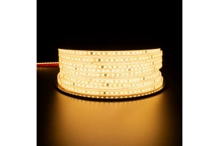 Velvalux LED Strip: Dé Sfeermaker voor Elke RuimteIntroduceer sfeer en elegantie in elke ruimte met de Velvalux LED Strip. Deze innovatieve LED-strip, uitgestrekt over 50 meter en stralend in warm wit licht van 3000K, is de perfecte balans tussen design, functionaliteit en duurzaamheid.De Plug & Play functionaliteit zorgt ervoor dat je geen extra driver nodig hebt en dat je de strip direct op de netstroom kunt aansluiten. Voeg daarbij de mogelijkheid om elke 10 cm de strip in te korten, en je hebt een verlichtingsoplossing die zich aanpast aan al je creatieve wensen. Of het nu gaat om de woonkamer, keuken of de tuin, de Velvalux LED strip is ontworpen om te schitteren en te imponeren.Maar de kracht van deze LED strip zit niet alleen in zijn schoonheid. Met een IP67 classificatie is het bestand tegen weer en wind, wat het ideaal maakt voor zowel binnen- als buitentoepassingen. De eenvoudige installatie, mede mogelijk gemaakt door het betrouwbare 3M dubbelzijdige plakband, zorgt voor een zorgeloze ervaring. En met een helderheid van maar liefst 1920 lumen per meter, ben je verzekerd van een verlichting die elke ruimte tot leven brengt.Of je nu een sfeervol hoekje wilt creëren of een ruimte volledig wilt transformeren, de Velvalux LED Strip is je ultieme partner. Stap over op een verlichtingservaring die even praktisch als betoverend is. Plug & Play: Direct aansluiten zonder driver. Op Maat Gemaakt: Elke 10 cm inkortbaar. Sfeervolle Verlichting: Naar wens dimbaar. Weerbestendig: IP67 classificatie. Eenvoudige Installatie: Met 3M plakband. Hoge Efficiëntie: 12W/m voor maximale helderheid. Schitterende Helderheid: 1920 lumen/m. Dichtbezet: 120 SMD2835 LEDs/m. Direct Aansluiten: Inclusief 20 cm voedingskabel.
