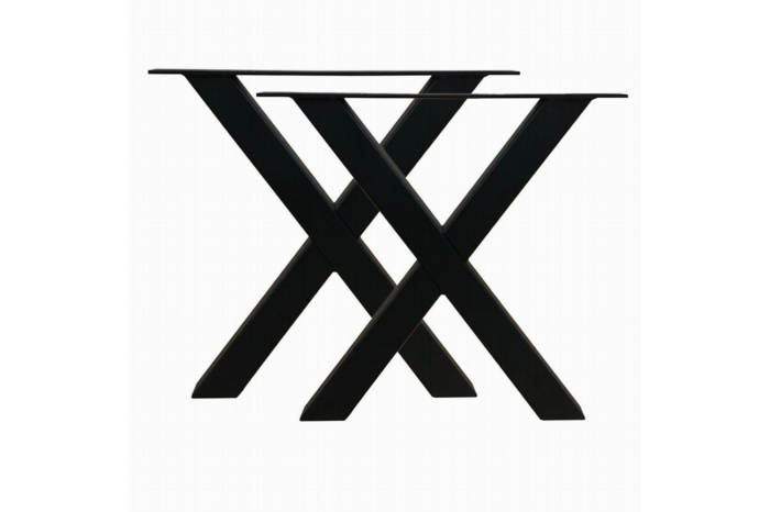 Set stalen X bankpoten / meubelpoten 54 bij 6 cm en hoogte 37,5 cm zwart (5 x 5 cm) - 2 stuks