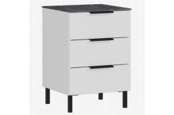 Nachtkastje Amalfi Wit-GrijsDit is een prachtig design nachtkasje die een mooie touch geeft aan uw slaapkamer. Dit kastje heeft 3 soepel lopende laden die zelfsluitend zijn.
