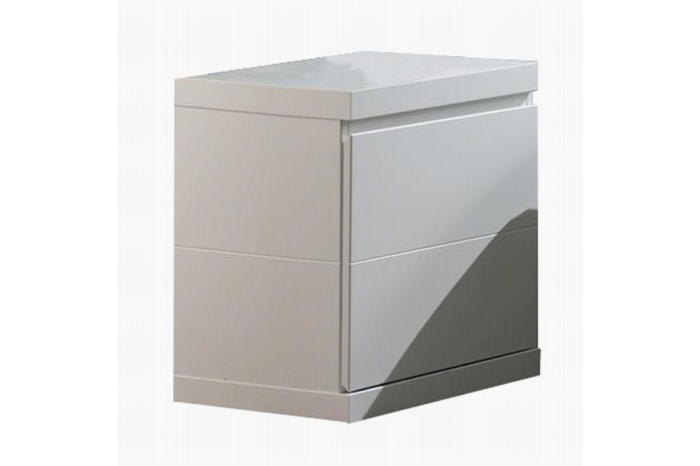 Dit nachtkastje is vervaardigd uit hoogwaardig MDF en heeft 2 greeploze laden met een verhoogde plint en een extra dik bovenblad.