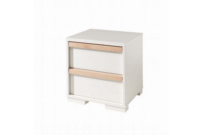 Dit hedendaagse nachtkastje is vervaardigd uit een stevige meubelplaat, de handgrepen zijn gemaakt van massief beuken. De twee handige laden zijn voorzien van soft-close en sluiten daardoor geruisloos. Het nachtkastje is afgewerkt in een sterke melamine. Leuk te combineren met de andere meubelen uit deze serie.