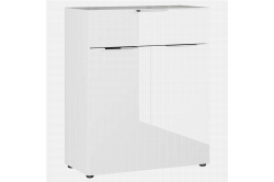 Bergkast Sirmione WitDeze bergkast heeft een combinatie van een deur en een lade. Achter de deuren met softclose-systeem liggen 2 legplanken zodat je 3 opbergvakken hebt.