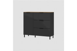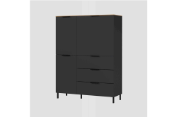 Opbergkast Amalfi Grafiet-Eiken LDeze kast heeft meer dan genoeg opbergruimte. De kast heeft drie deuren, met achter elke deur drie opbergplanken. Rechtsonder bevinden zich ook nog drie laden om spullen in op te bergen.