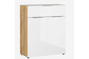 Deze bergkast heeft een combinatie van een deur en een lade. Achter de deuren met softclose-systeem liggen 2 legplanken zodat je 3 opbergvakken hebt.