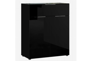 Deze bergkast heeft een combinatie van een deur en een lade. Achter de deuren met softclose-systeem liggen 2 legplanken zodat je 3 opbergvakken hebt.