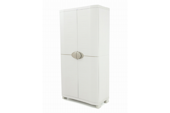 Kunststof opbergkast bezemkast grijs 90x184cm kopen bij Intergard?Opbergkast kunststof bezemkast of balkonkast grijs 90x184cm ergonomisch gefabriceerd volgens ISO 9001, UV-, vocht- en vorstbestendig, eenvoudige en snelle montage zonder gereedschap. Verstelbaar, belasting bovenste plank 50kg, binnenste planken 20kg, stabiel.