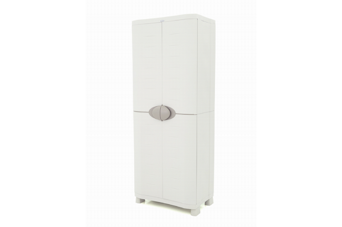 Kunststof opbergkast grijs 70x184cm kopen bij Intergard?Opbergkast kunststof grijs of balkonkast 70x184cm met 4 inlegplanken, duurzaam ergonomisch gefabriceerd volgens ISO 9001, UV-bestendig, eenvoudige en snelle montage zonder gereedschap. Verstelbaar, belasting bovenste plank 50kg, binnenste planken 20kg, stabiel.