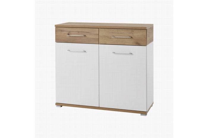 Handige opbergkast voor in je hal of woonkamer, voldoende opbergruimte voor al je spullen. Voorzien van twee laden en achter de deuren 2 verstelbare legplanken. Dit meubel is afgewerkt met een sterke melamine en metalen handvatten, mede hierdoor haal je een echte eyecatcher in huis! Deze serie meubelen is geproduceerd in Duitsland wat staat voor goede kwaliteit waar je lang plezier van hebt. Alle randen zijn afgewerkt met een sterke ABS-afwerking die tegen een stootje kunnen en alle deuren en laden zijn voorzien van soft-close voor een geruisloze sluiting. Mooi te combineren met de andere meubelen uit deze serie!