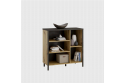 Opbergkast Madeira Eiken-ZwartDeze handige opbergkast is een echte eyecatcher in je interieur. De ombouw van de kast is vervaardigd uit een sterke MDF en afgewerkt met een stevige melamine coating.