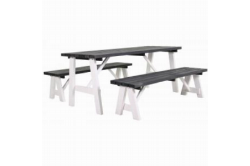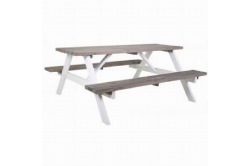 Simone houten picknicktafel grijs/witSimone houten picknicktafel grijs/wit Voor de Simone houten picknicktafel is een mooie combinatie gekozen van grijs hout en een wit onderstel.