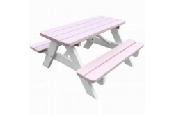 Minnie kinderpicknicktafel roze/witMinnie kinderpicknicktafel roze/wit Deze vrolijk gekleurde picknicktafel is perfect om voor de kinderen een eigen plekje in de tuin in te richten.