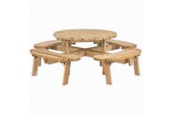 Ronde picknicktafel geïmpregneerd vurenRonde picknicktafel geïmpregneerd vuren Specificaties: Breedte: 219 cm Diepte: 219 cm Hoogte: 73 cm Breedte tafelblad: ø119 cm Houtdikte: 4.