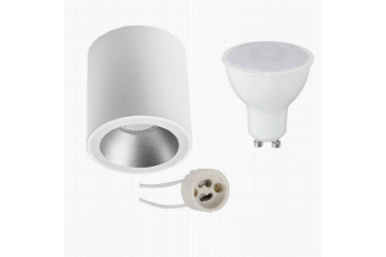 Opbouwspot Set - Aigi - Pragmi Cliron Pro - GU10 Fitting - Opbouw Rond - Mat Wit/Zilver - 8W - Warm