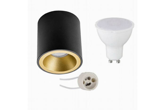 Opbouwspot Set - Aigi - Pragmi Cliron Pro - GU10 Fitting - Opbouw Rond - Mat Zwart/Goud - 8W - Warm
