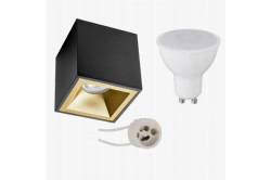 Opbouwspot GU10 - Pragmi Cliron Pro - Opbouw Vierkant - Mat Zwart/Goud - Aluminium - Verdiept - 90mm Elegante opbouwspot voor sfeervol lichtDe Pragmi Cliron Pro opbouwspot brengt stijl en functionaliteit samen in een fraai vormgegeven armatuur.€ 56,48