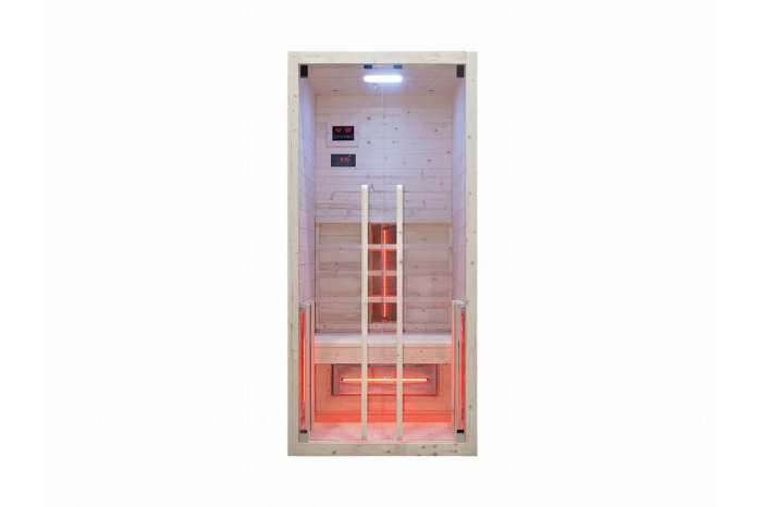 Ontdek de infrarood sauna Rose 1, een compacte wellnessoplossing van 90 x 90 x 190 cm die perfect past in uw woning. Deze moderne infrarood sauna biedt diepe ontspanning, en heeft effect op de bloedsomloop, spieren en gewrichten. Dankzij de efficiënte infraroodstralers geniet je binnen enkele minuten van een aangename warmte. De Rose 1 combineert comfort, stijl en gezondheid in één. Ideaal voor wie dagelijks wil ontspannen en nieuwe energie wil opdoen. Ervaar pure wellness in huis met de infrarood sauna Rose 1, compact in formaat, groots in werking.