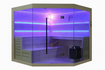 De Marriott zit boordevol heerlijke features. Het interieur van deze vernieuwde sauna is geproduceerd van abachi hout. Het voordeel van dit hout is dat de temperatuur ervan altijd comfortabel aanvoelt, ongeacht de hitte in de saunacabine. Verder is deze sauna uitgerust met een kristallen wand, die warmte opneemt en verspreid weer afgeeft, voor een nog intensere sauna-ervaring. U ontspant in de sauna altijd in de juiste sfeer, dankzij het ingebouwde muzieksysteem, dat u eenvoudig vanuit de cabine kunt bedienen met een afstandsbediening. Kortom: in de Marriott wordt elke liefhebber van wellness volledig in de watten gelegd. Dit product is exclusief een kachel.