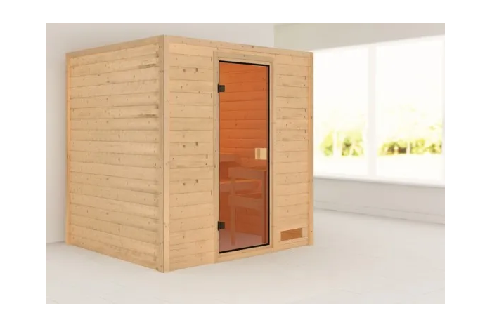 De Adelina sauna is een compacte sauna met een rechthoekige vormgeving. De sauna heeft diverse mogelijkheden qua deur- en kacheltype en kan gespiegeld opgebouwd worden. Met een 8mm bronzeglas deur. De sauna wordt verkocht inclusief: 2 x bank 57 cm en kachelrek. Exclusief: Kachel, licht, vloer, vloerrooster en Classic hoofdsteun. Als u de sauna volledig wilt personaliseren, kunt u een kijkje komen nemen bij Fonteyn. Hier kunt u samen met een adviseur de perfecte sauna samenstellen.