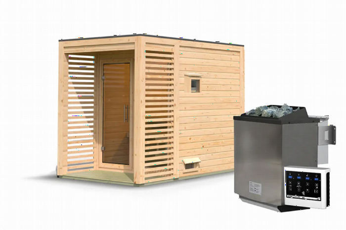 Karibu | Angkor 1 Buitensauna | Biokachel 9 kW Externe Bediening