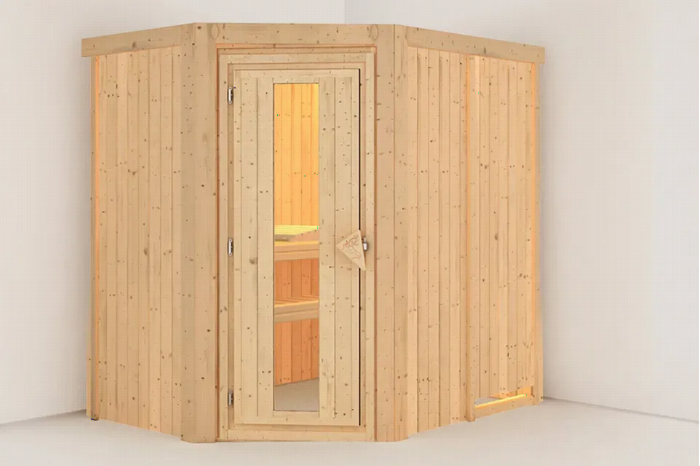Karibu | Carin Sauna met Dakkraag | Antracietglas Deur | Kachel 9 kW Externe Bediening