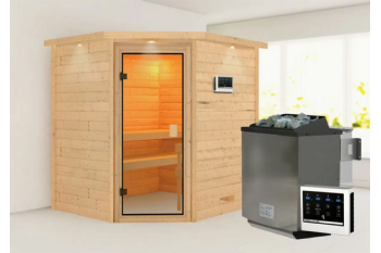Karibu | Elea Sauna met Dakkraag | Biokachel 9 kW Externe Bediening
