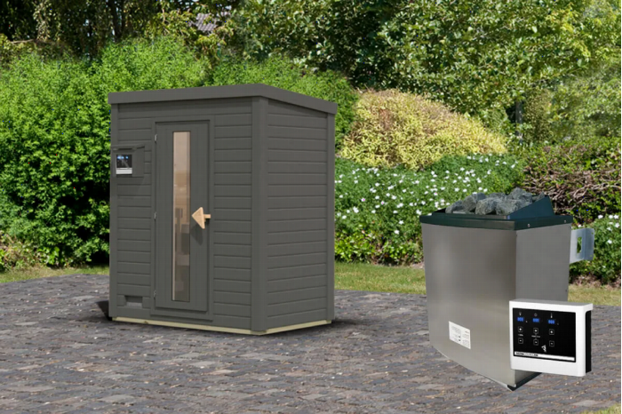 Karibu | Hytti 0 Buitensauna | Terragrijs | Kachel 9 kW Externe Bediening
